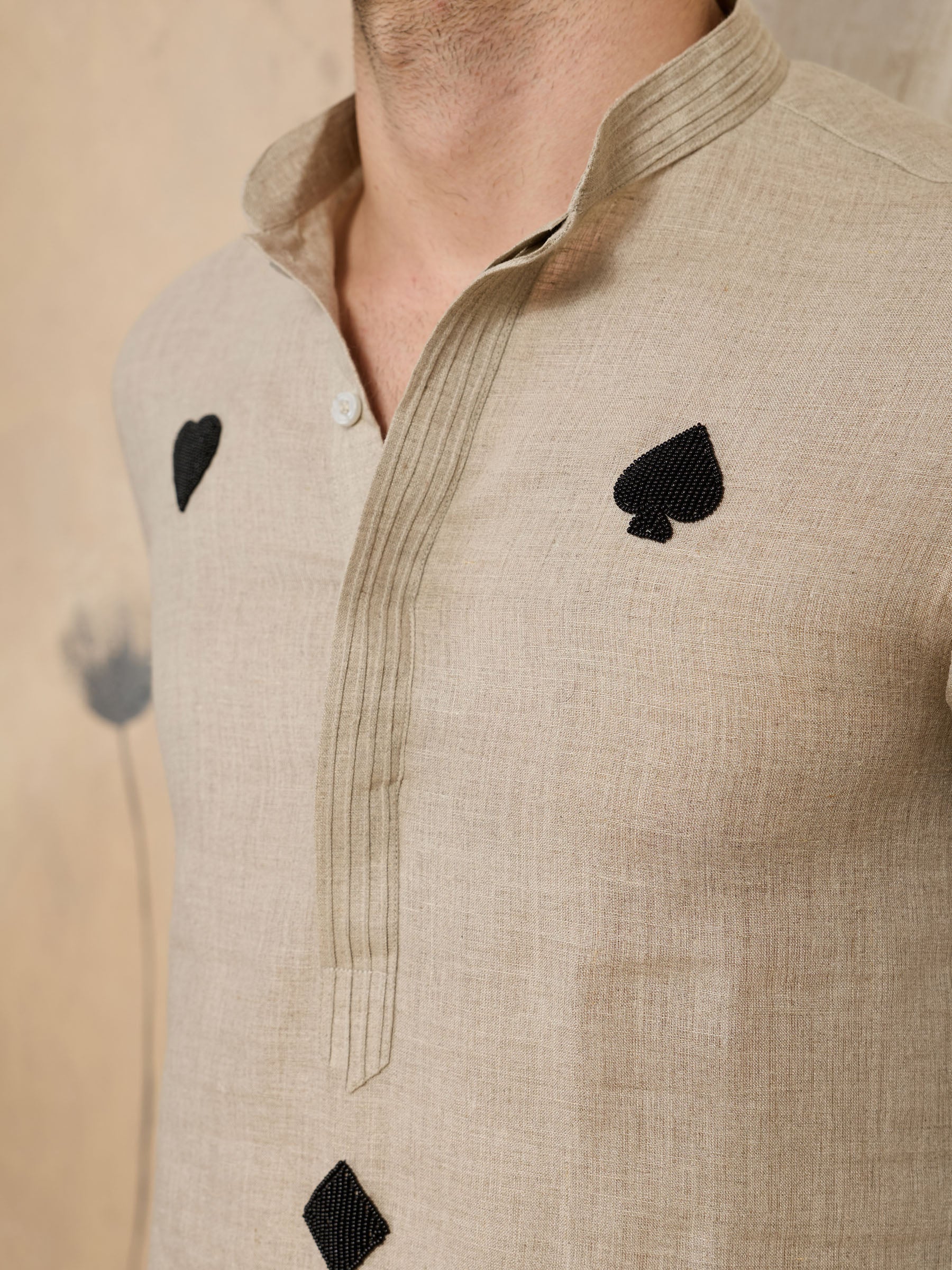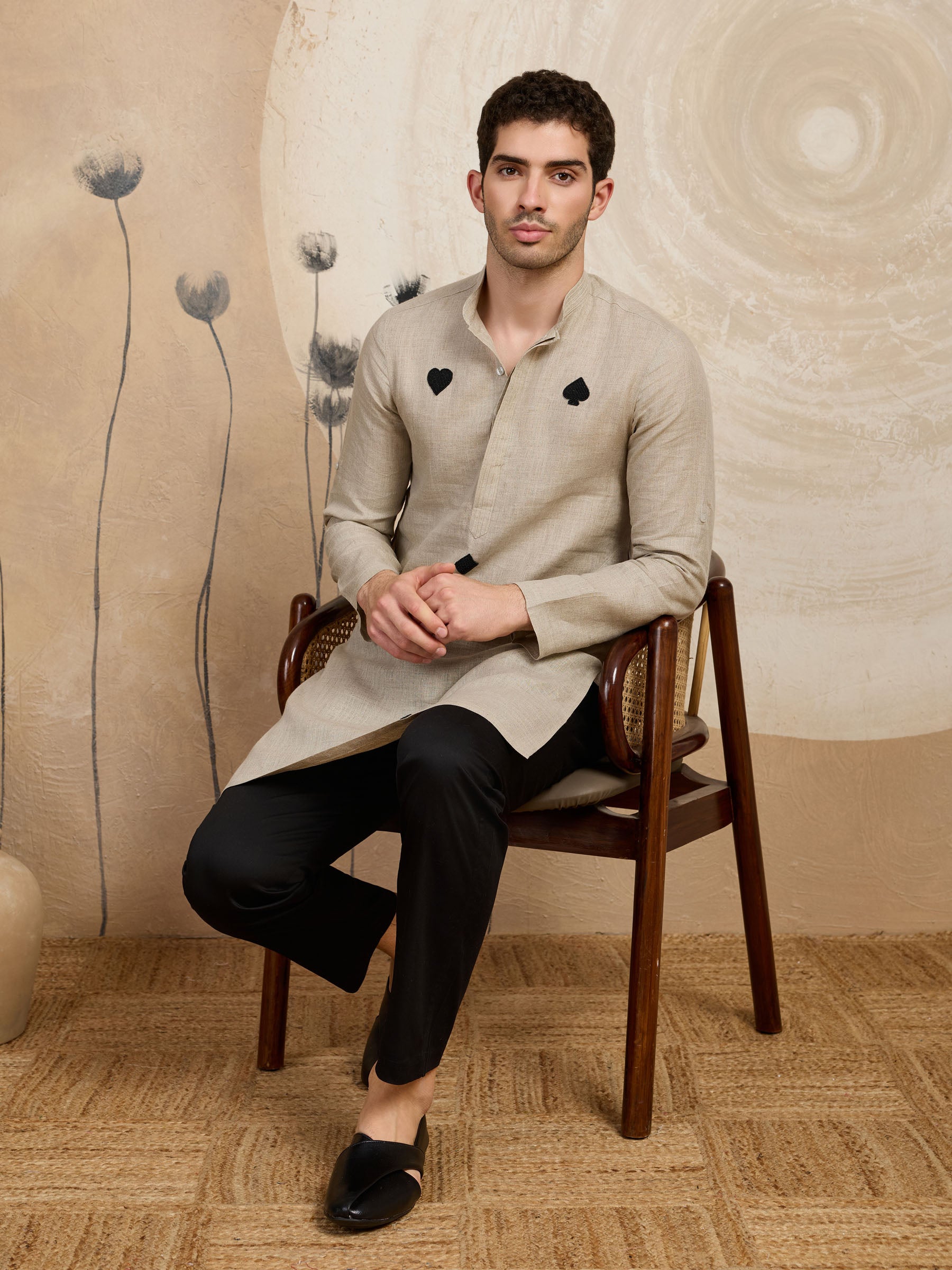 Stay unmatched in subtle sophistication with this suave linen kurta, where understated style plays the winning card.