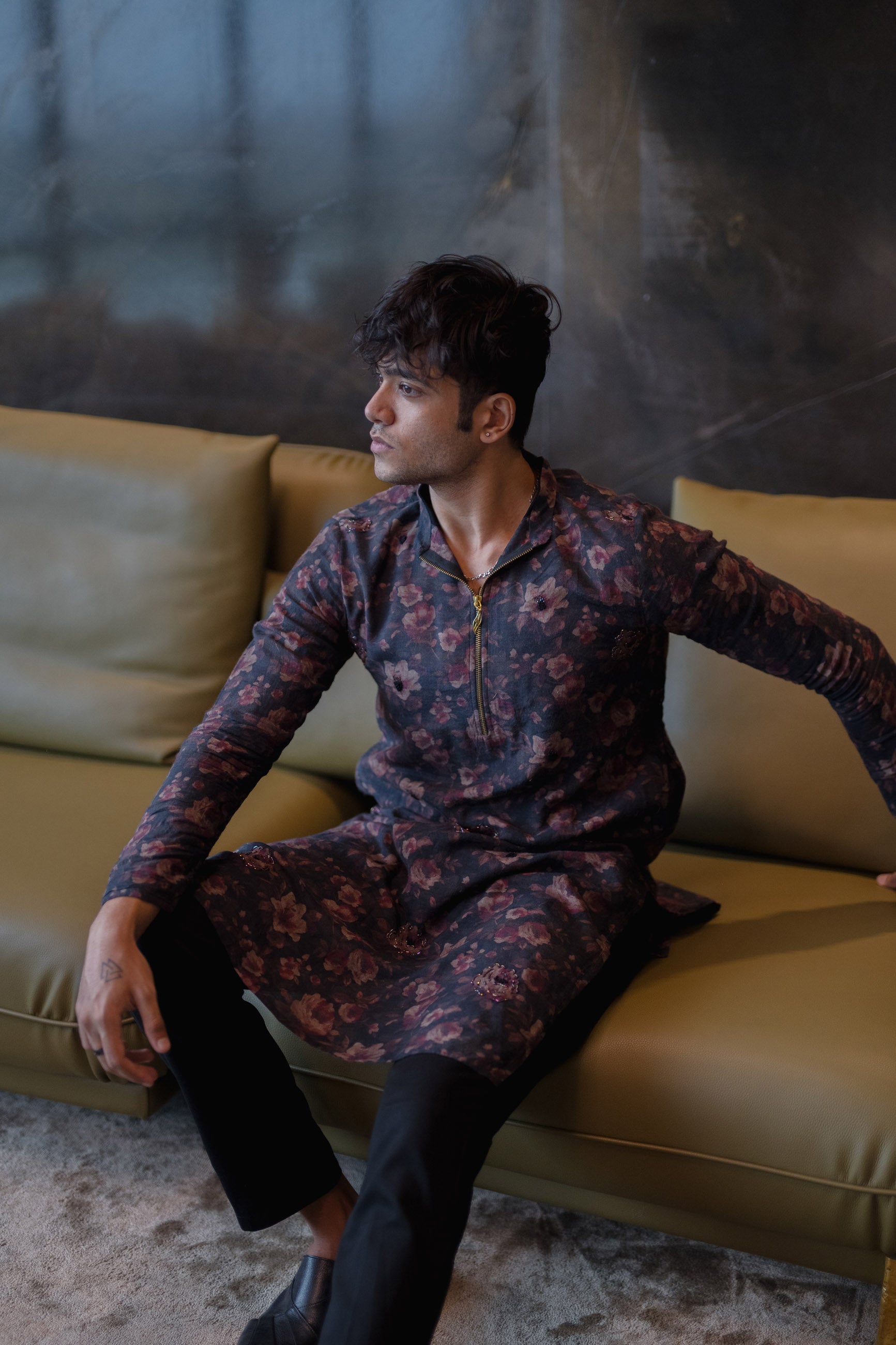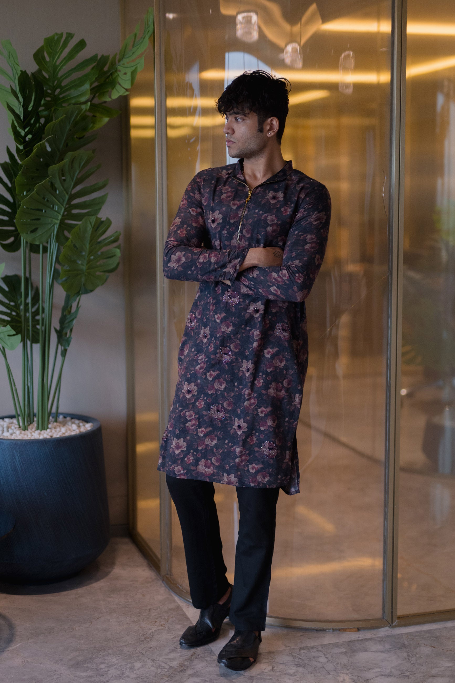This full floral kurta in black muslin is a celebration in itself—luxurious, vibrant, and heritage-inspired.