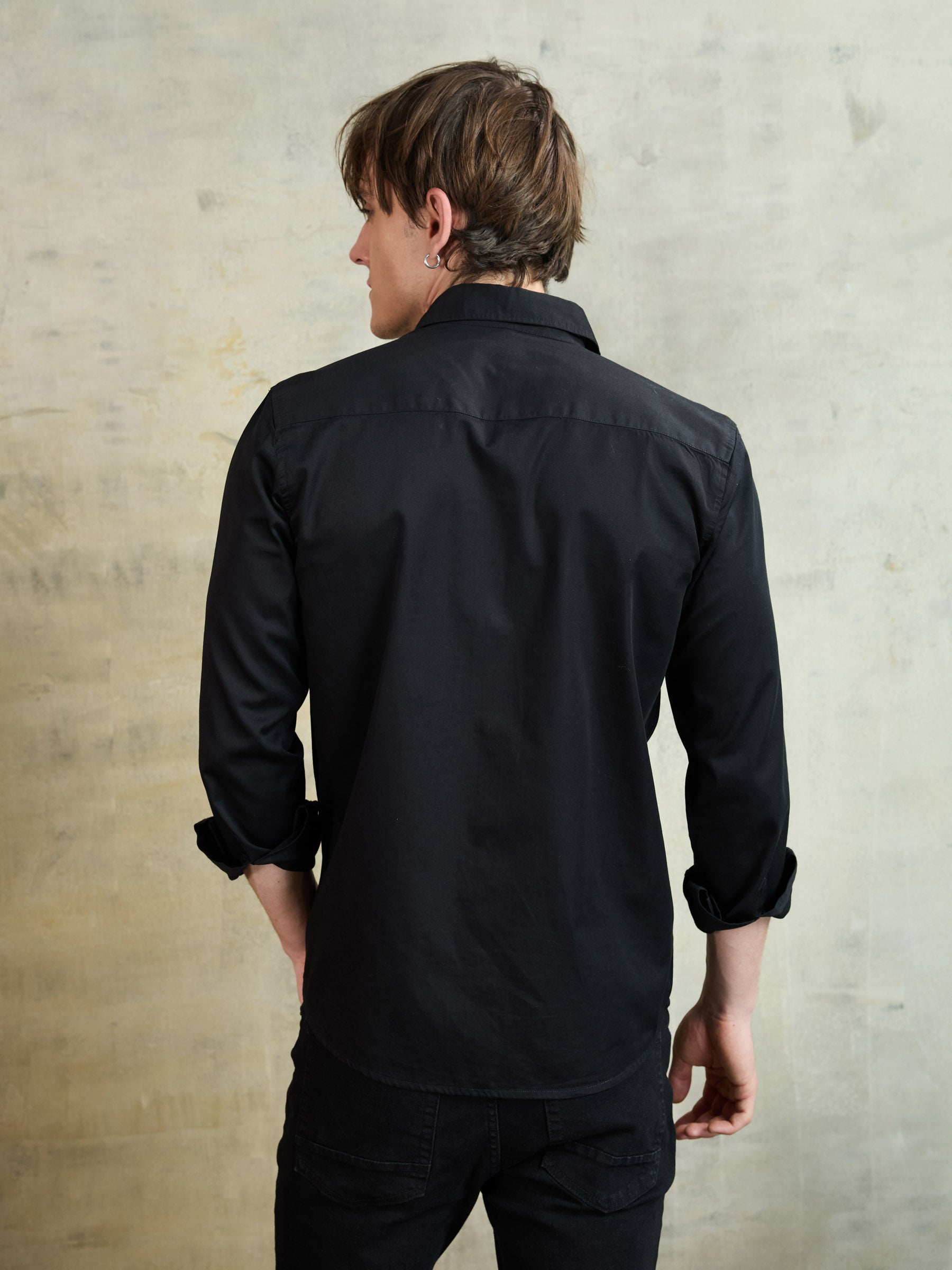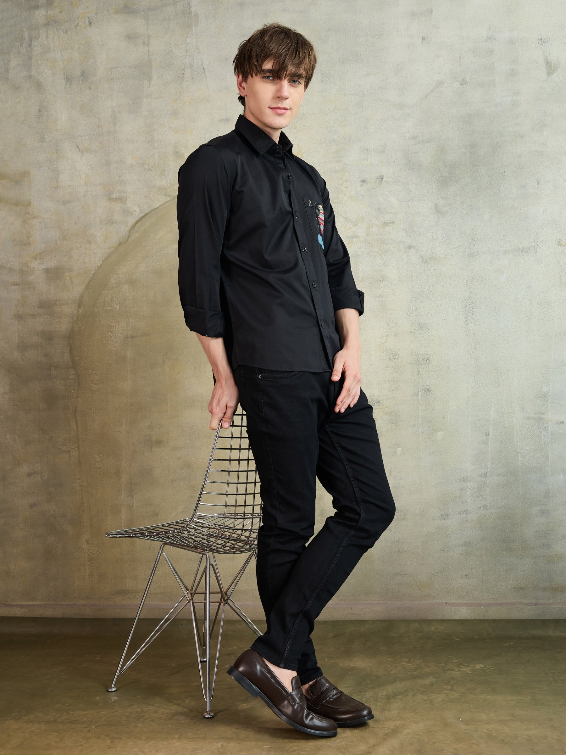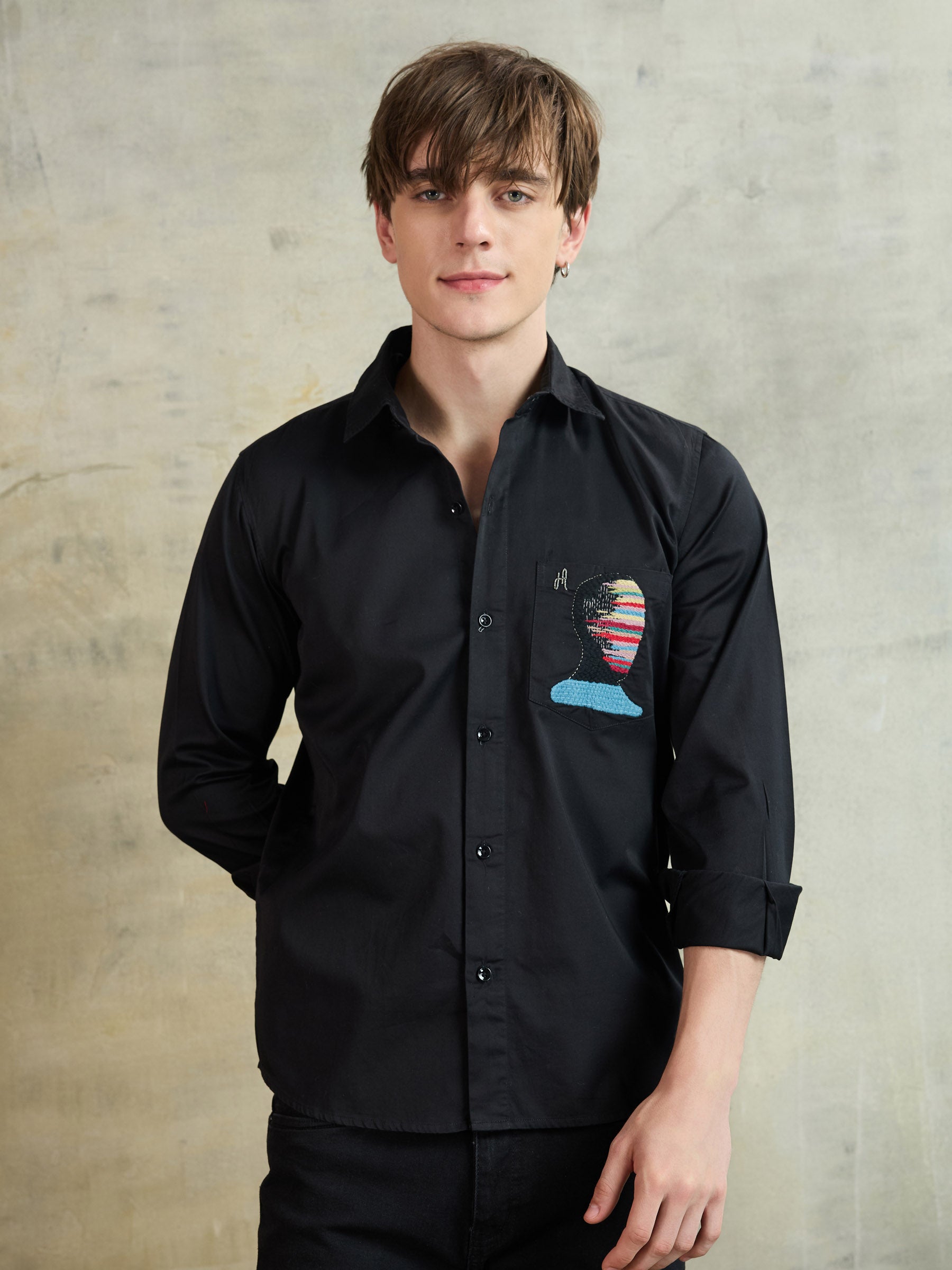 Made from 100% cotton, this black shirt features an abstract human head design. A sleek expression of individuality, perfect for evening wear.