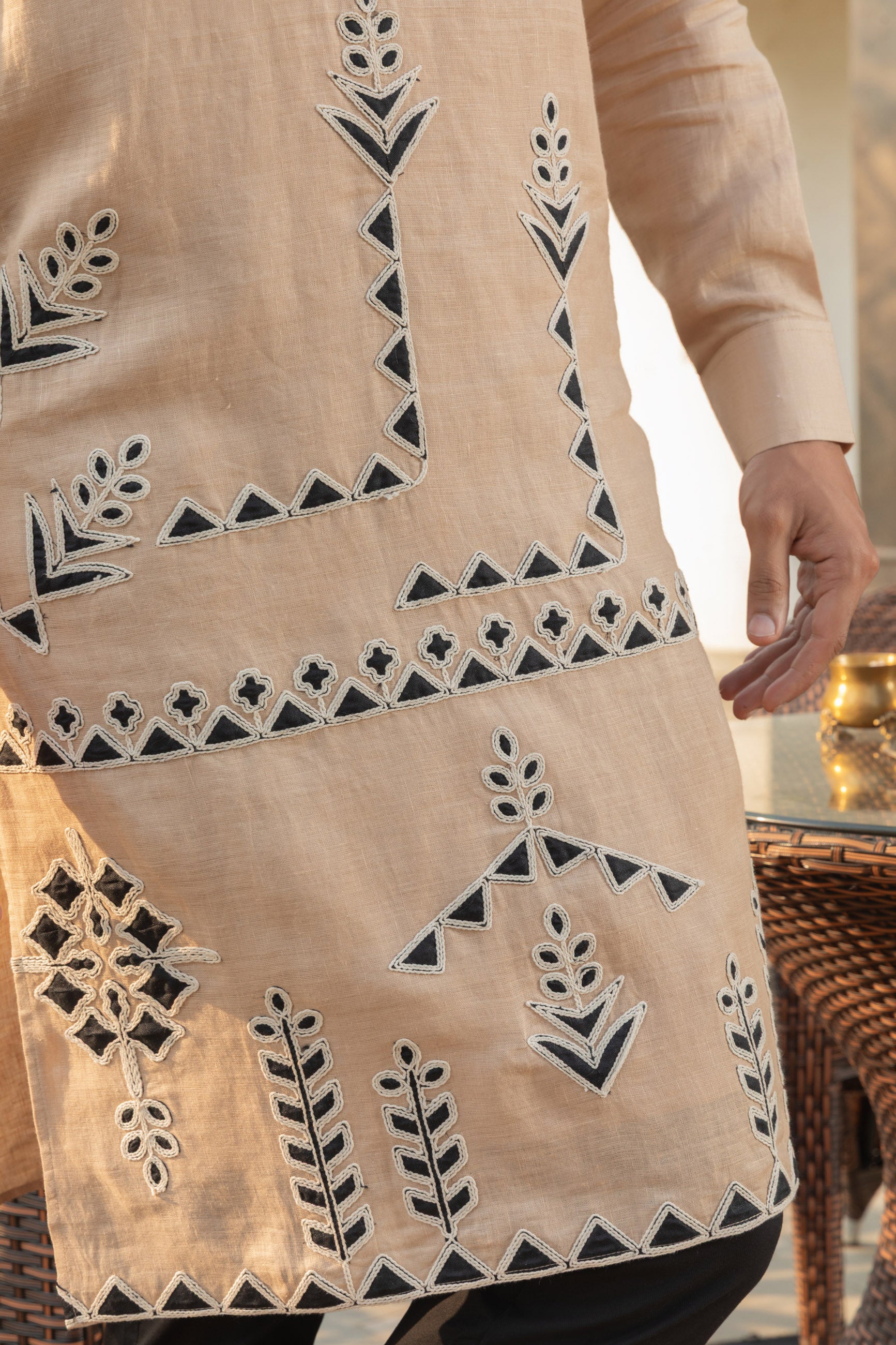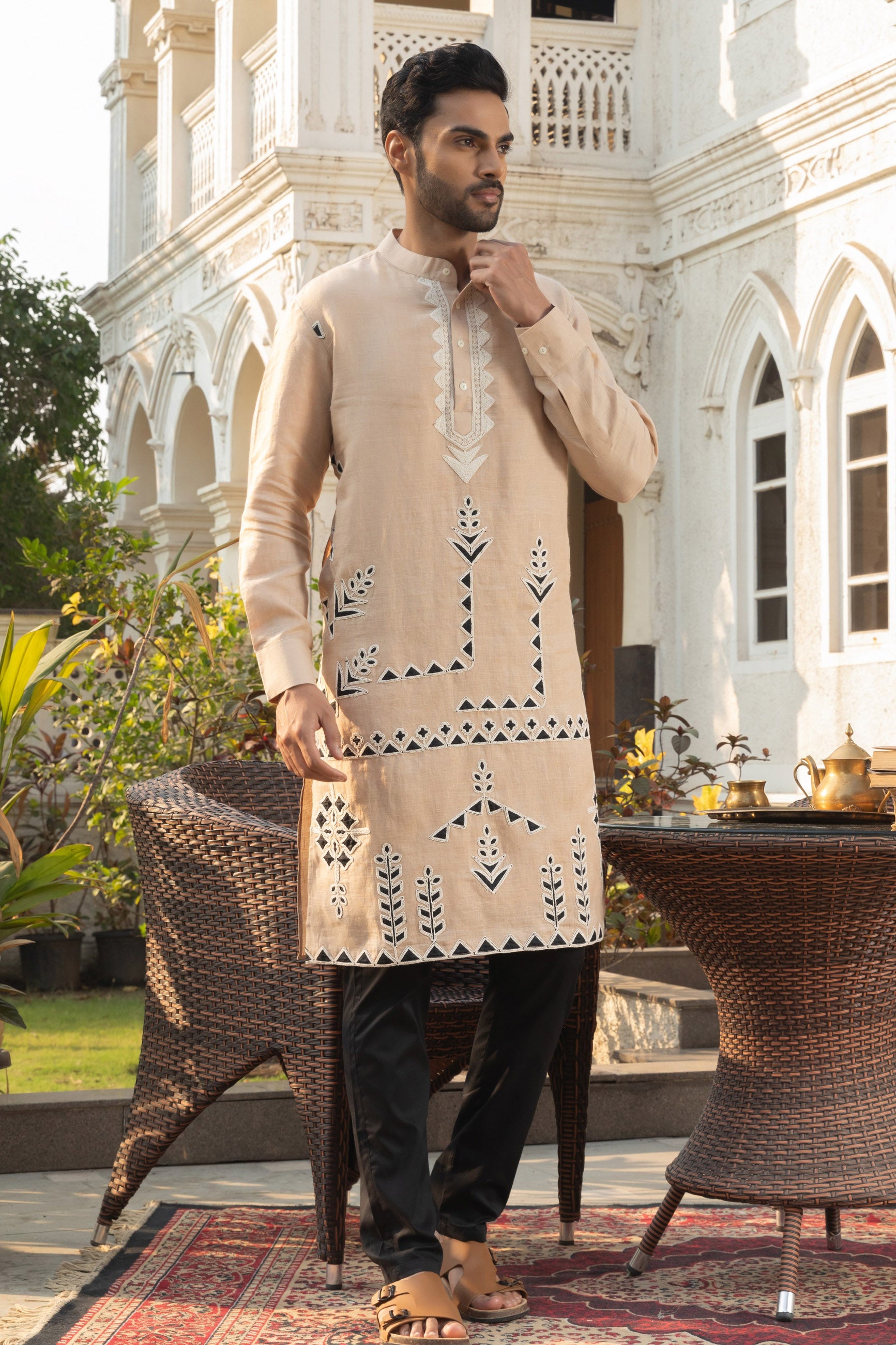 A timeless cream linen kurta that exudes elegance with its soft, breathable fabric. Ideal for relaxed outings or casual gatherings.