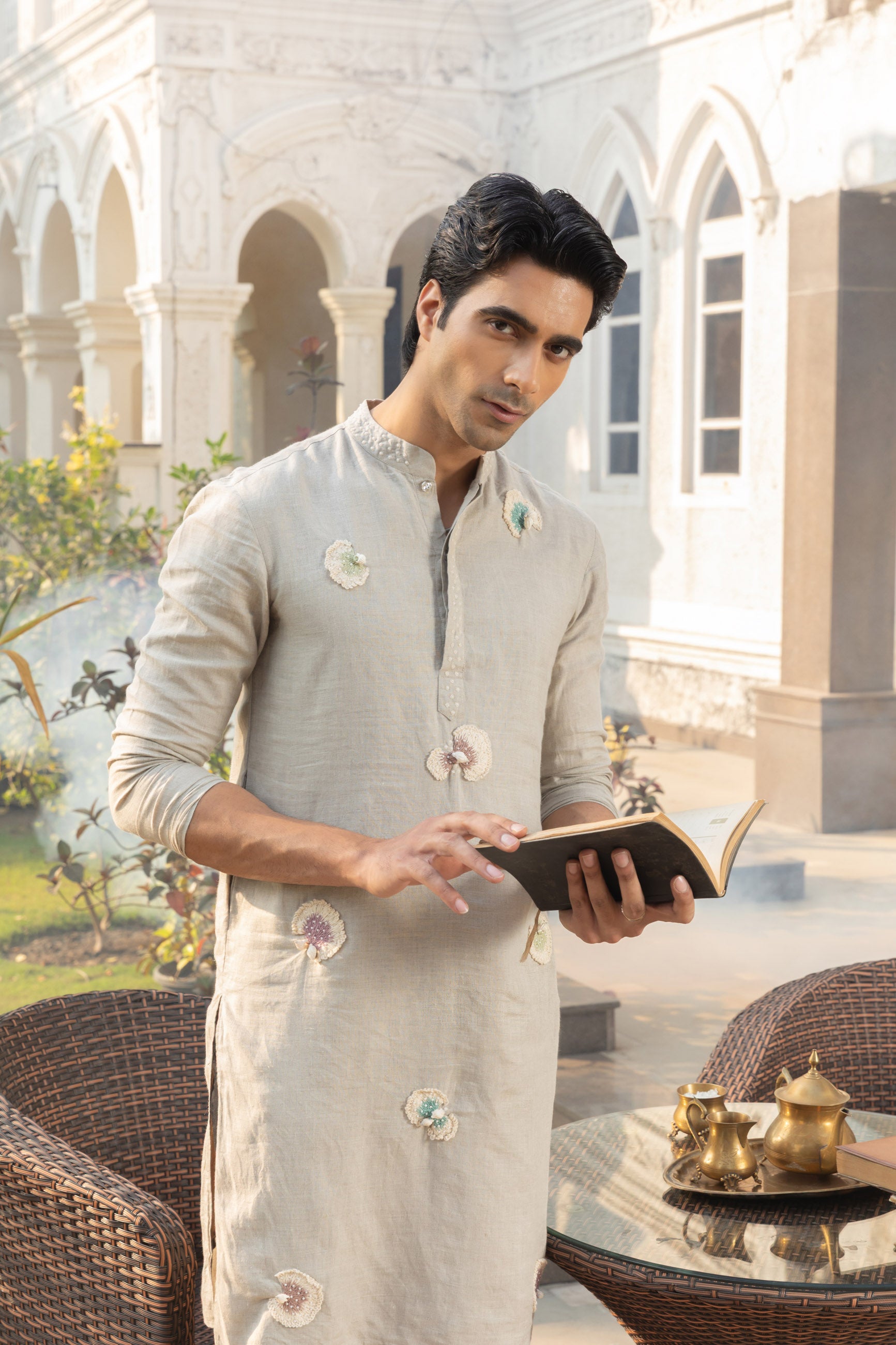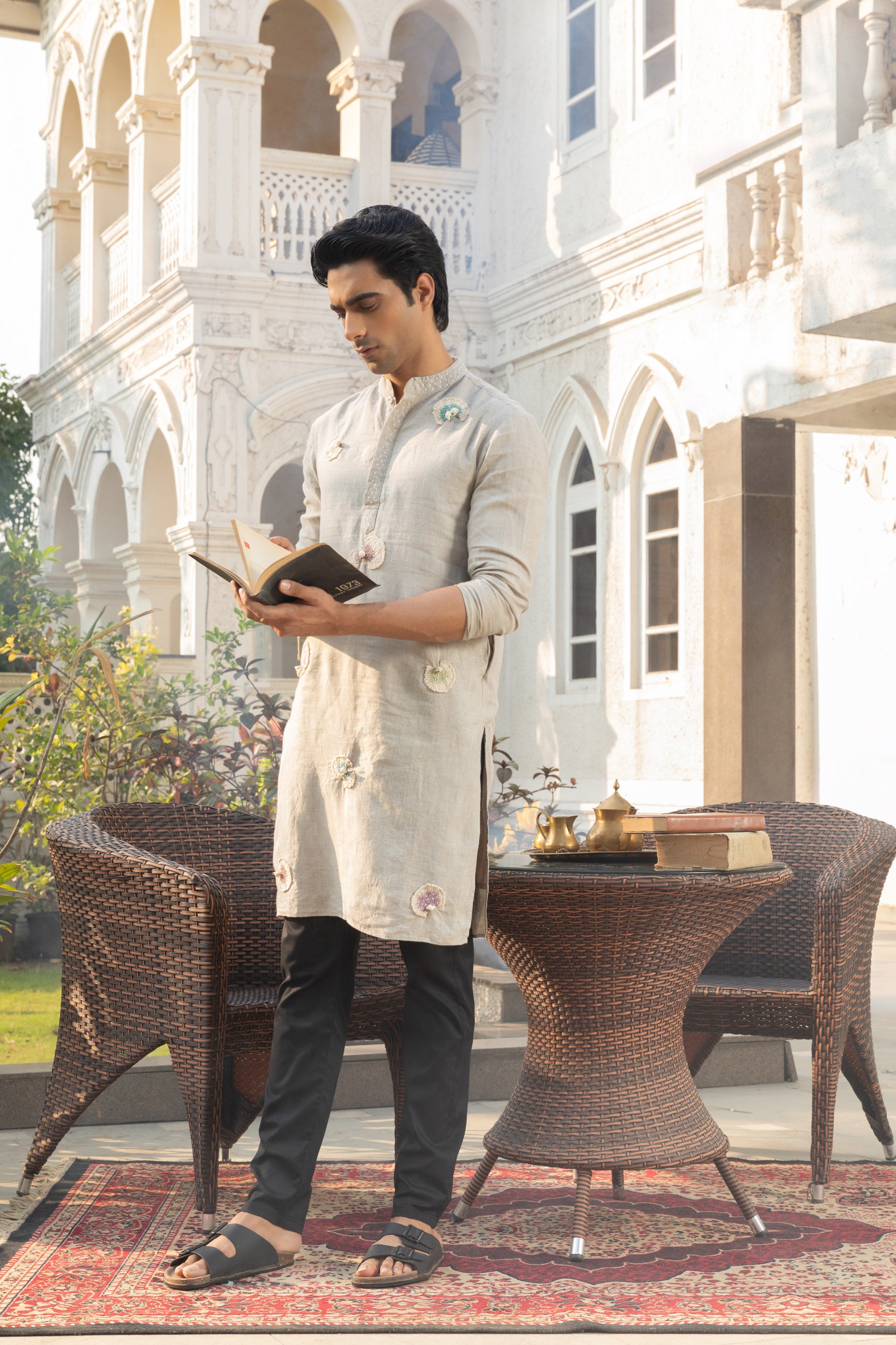 A light grey linen kurta that blends understated sophistication with all-day comfort. Perfect for a cool, laid-back style.