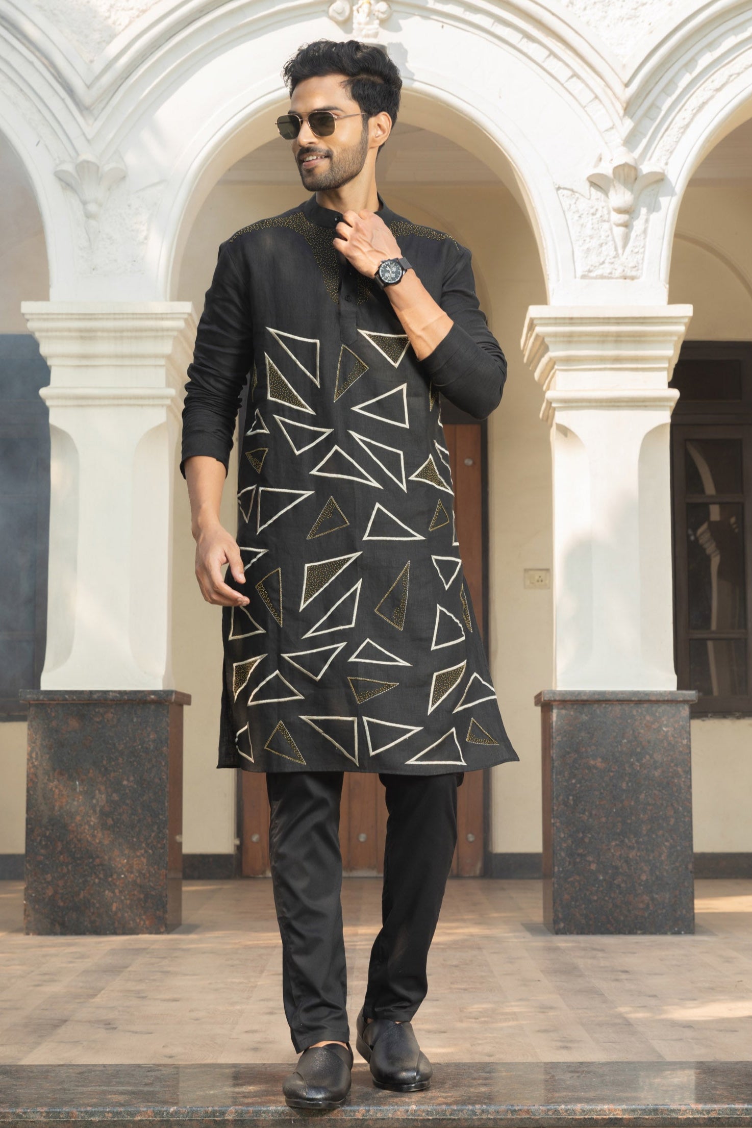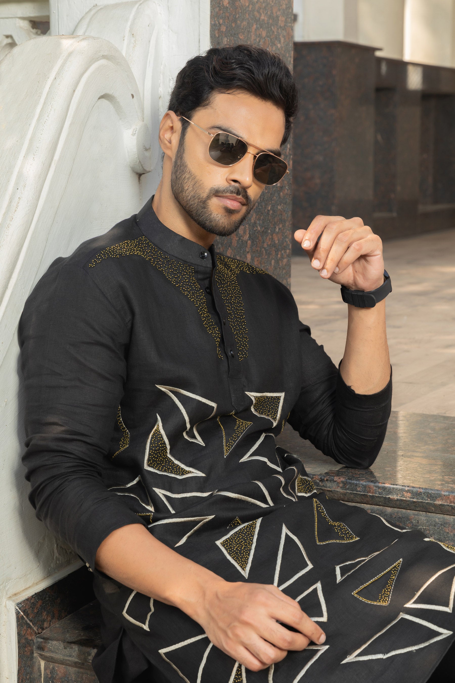 A classic black linen kurta that exudes understated elegance. It offers both comfort and style for any occasion. The breathable fabric ensures you stay cool, while the rich black hue adds a touch of refinement to your wardrobe.