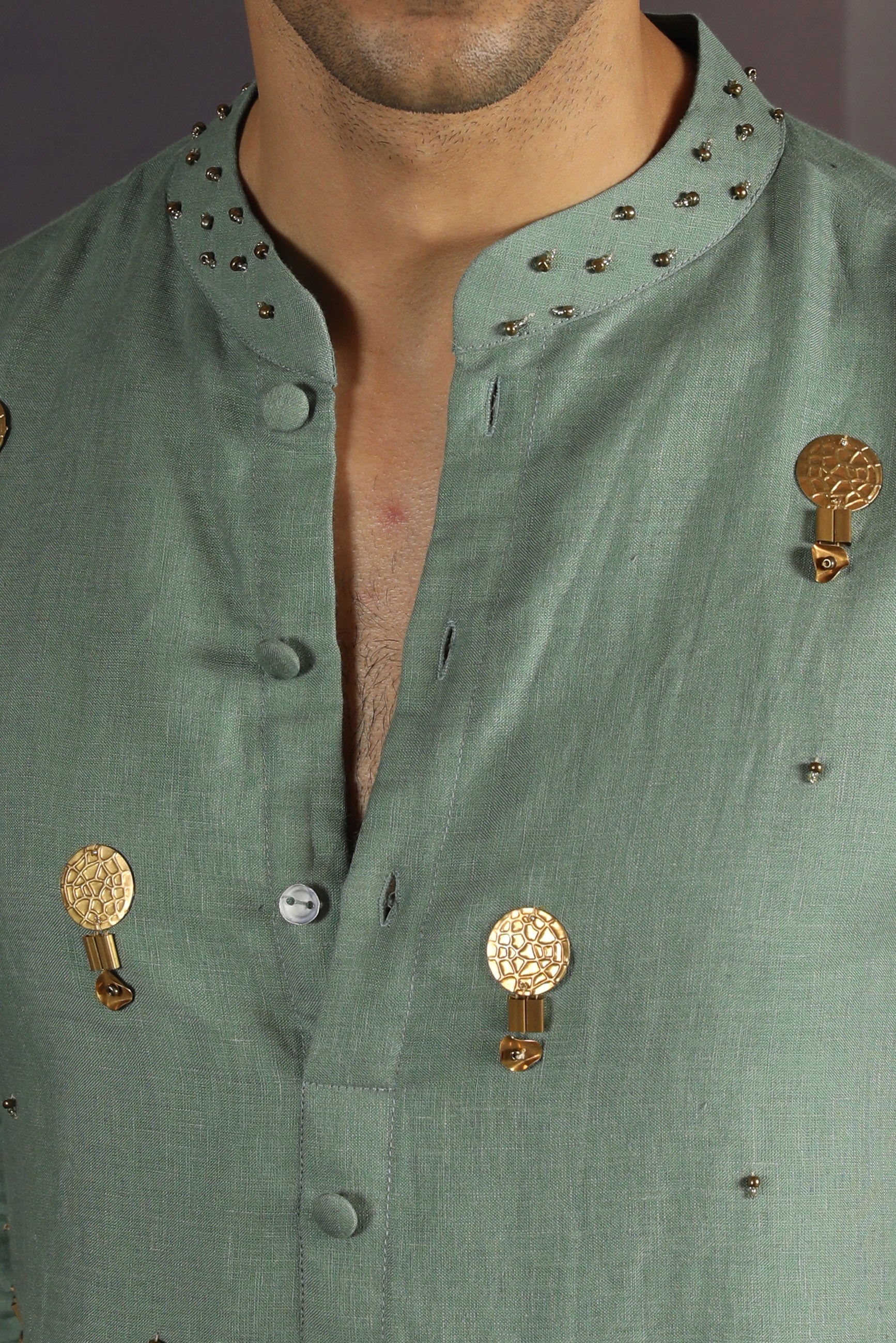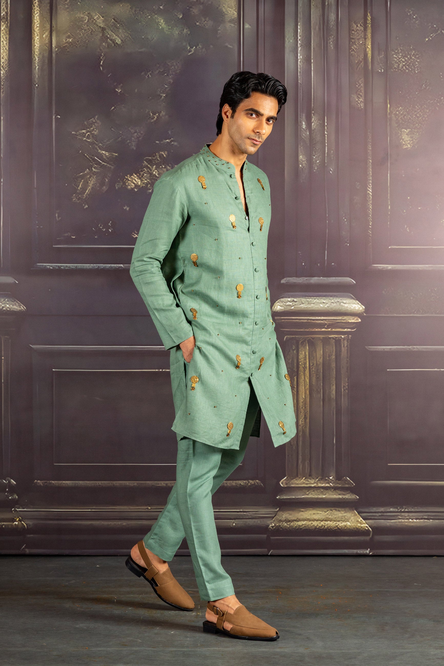 A soothing sea green kurta in lightweight linen, offering relaxed fit and all-day comfort. Perfect for casual outings and laid-back occasions.