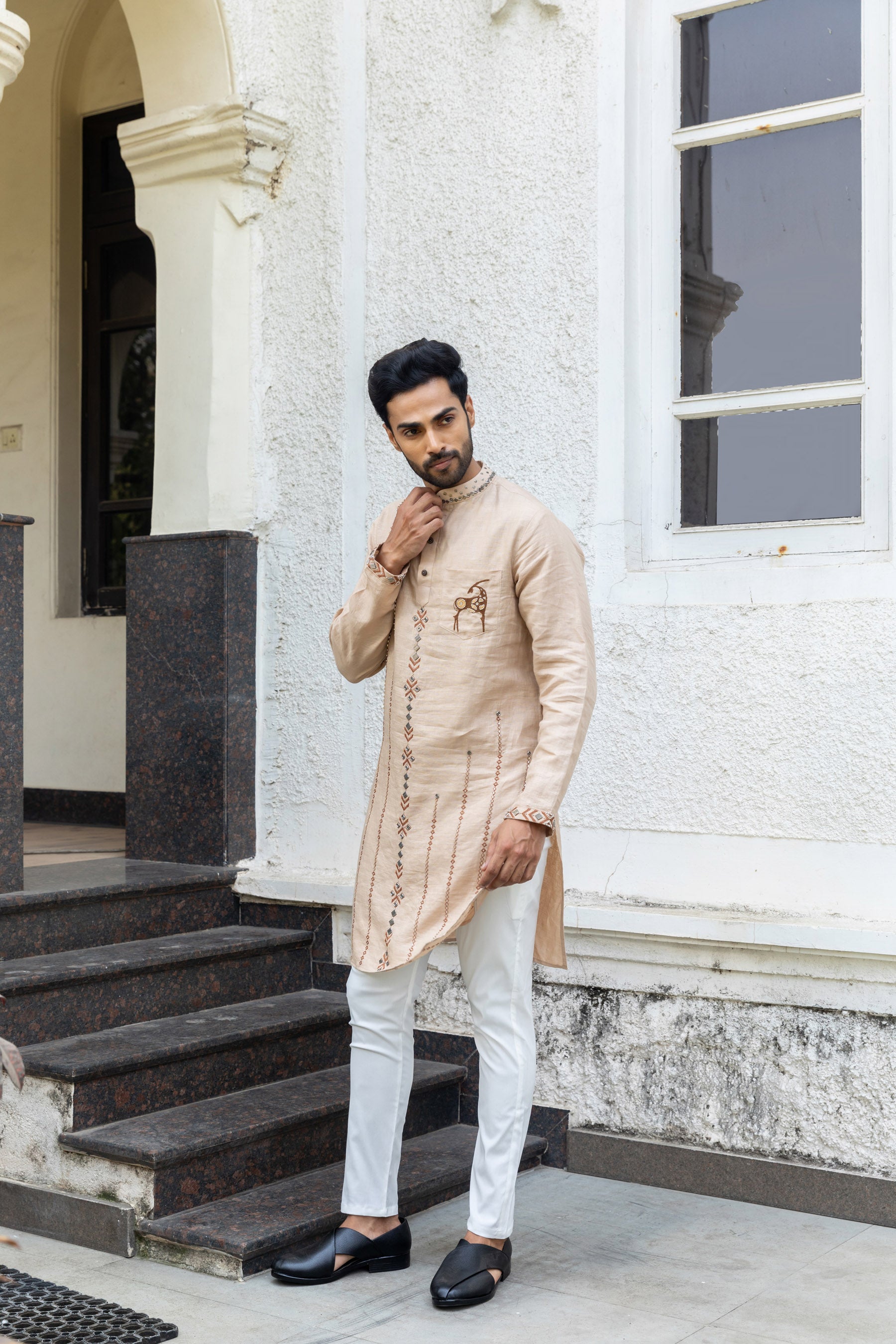 A soft, light brown linen kurta that combines effortless style with ultimate comfort. Ideal for casual wear or relaxed gatherings.